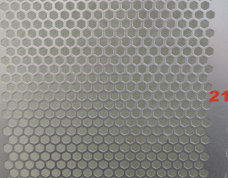 As chapas perfuradas com furos hexagonais são muito utilizadas em projetos de arquitetura e estética, proteção de caixas de som, caixas de produtos eletrônicos, entre outras aplicações que se necessitam de uma grande área aberta, uma boa ventilação e um perfeito acabamento.